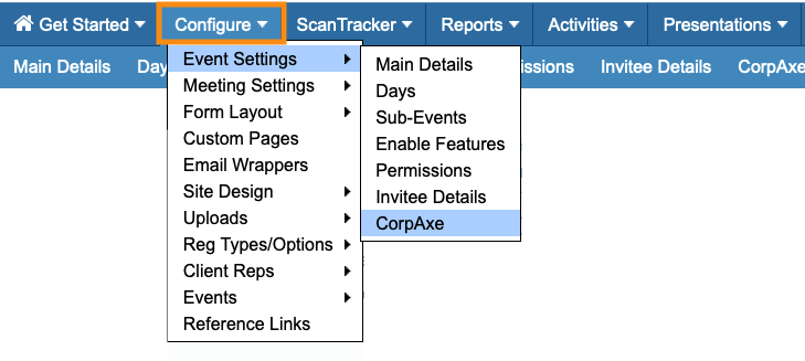 - Step 1. Head to the Configure tab. Choose Event Settings, then Corpaxe:
