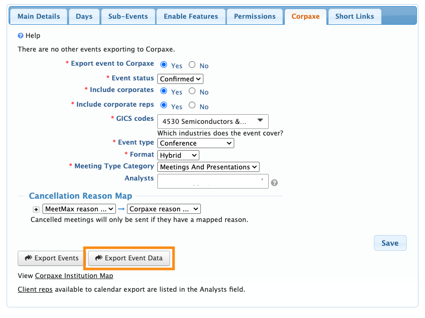 You’ll also see a new Cancellation Reason Map section on this page. You only need it if you’re exporting your event’s meetings to Corpaxe. If not, you can ignore it.
