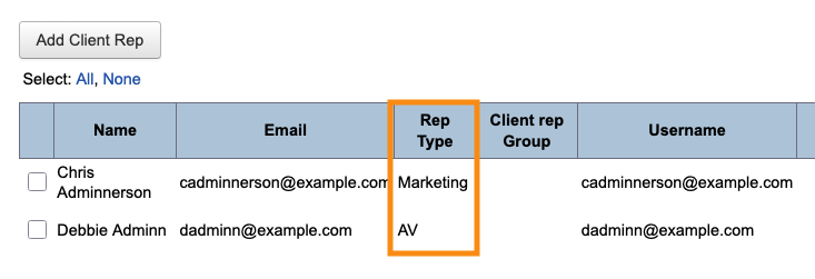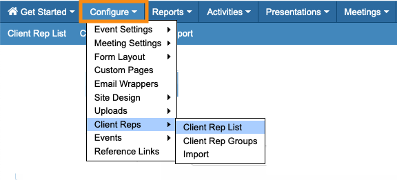 You’ll add and manage Client Reps from the Configure tab: