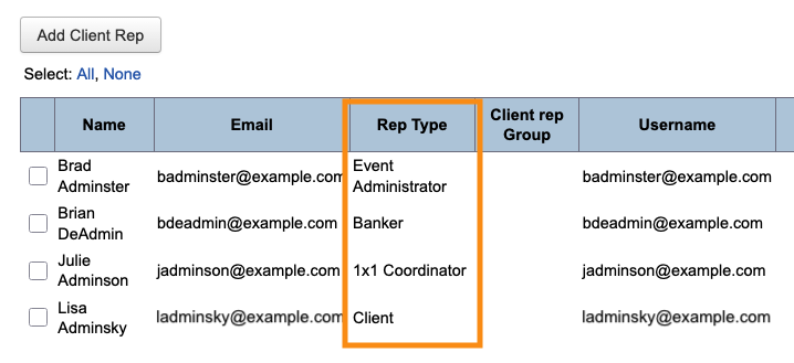 Your event might also have certain Client Reps who focus on specific aspects of your event, like: