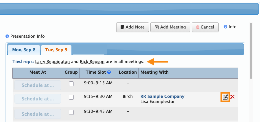 | Untied Reps can’t be added to any meetings. |