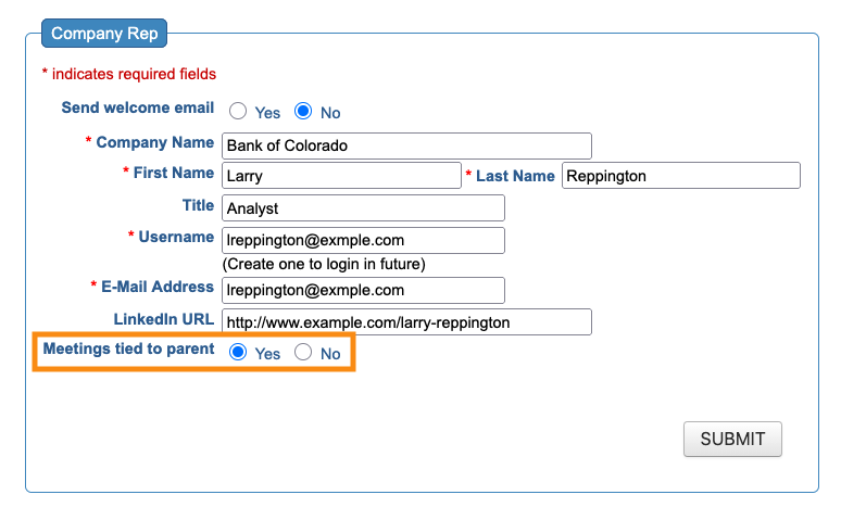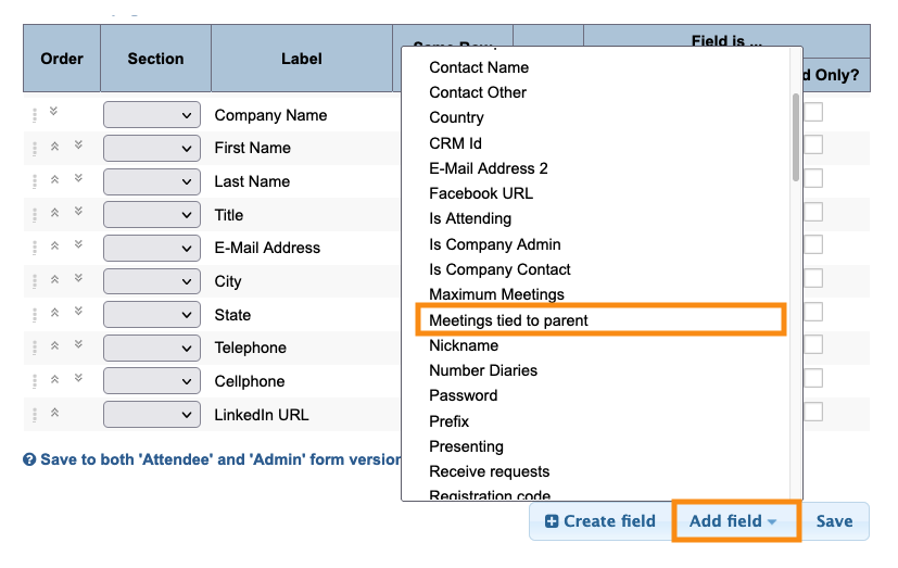 - Add it to the public form: Use this if the main Company Contact will register all their own Company Reps, and the Contact wants to choose who is and isn’t tied for meetings.