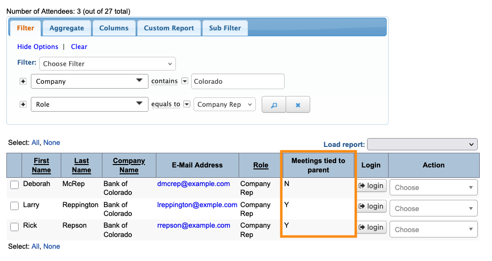 In this example, Bank of Colorado has three Company Reps at our event: