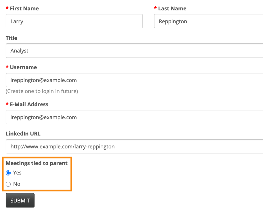 To remove these Reps from your meeting program, you’ll use the Meetings tied to parent form field.