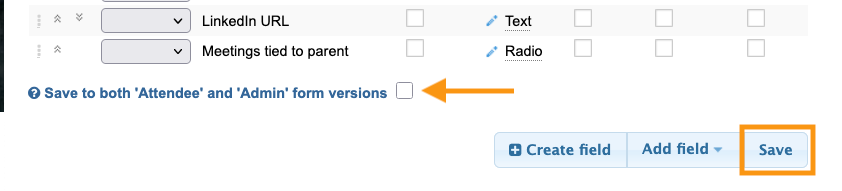 - If you want it to appear in both the Attendee and Admin forms, check the box.