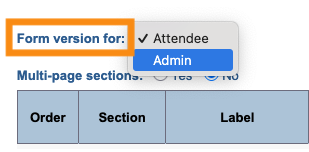 - Step 2. In the top left corner, set the Form version menu. Choose whether you’ll add it to the Attendee (public) version, or the Admin version: