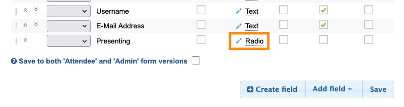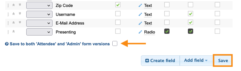 - If you want it to appear in both the Attendee and Admin forms, check the box.
