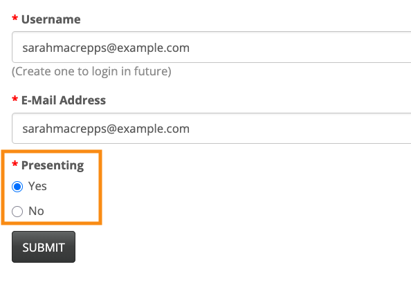 - Add it to the public form: Use this if the main Company Contact will register all their own Company Reps. The Contact wants to choose who is and isn’t presenting.