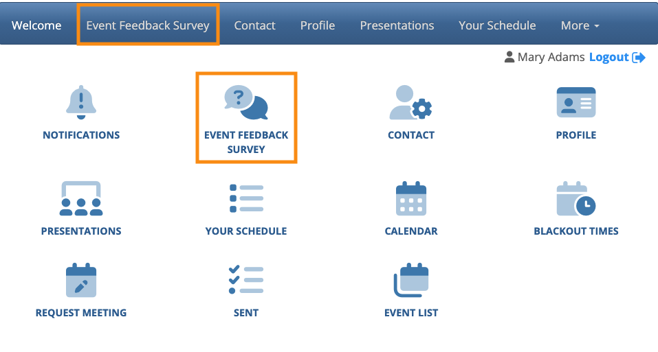 - When your Custom Page is enabled, participants can log into MeetMax and see it in the menu bar: