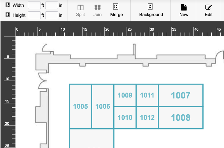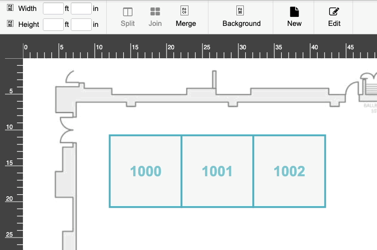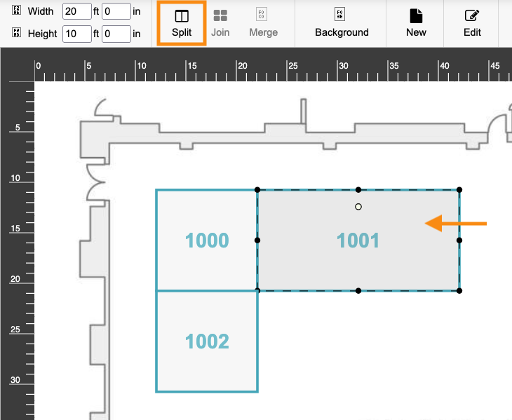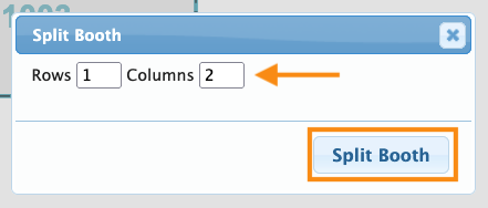 - Step 4. To split a booth into smaller segments, click on it to highlight. Then click the Split button: