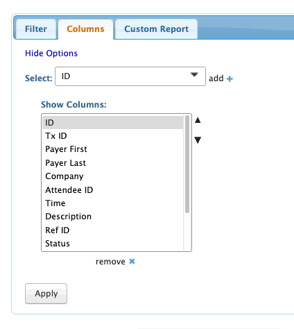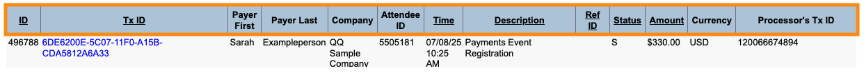- Processor's Tx ID: Your payment processor assigns this ID to each transaction. Use this column if you want to reference this ID in MeeetMax.
